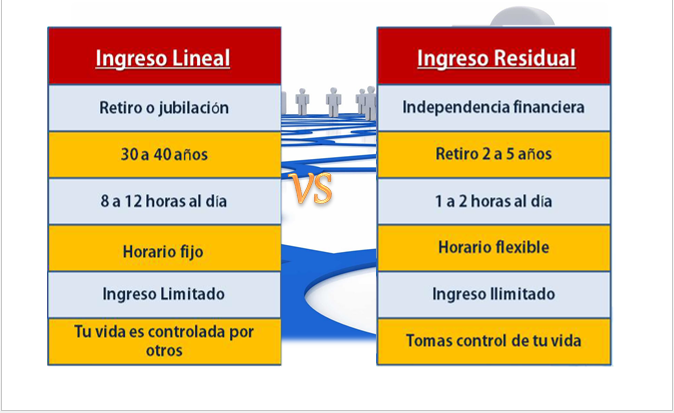 El poder de los ingresos residuales es el concepto que se define "vivir de las rentas" es un ingreso que se persive por realizar el trabajo una sola vez y se te paga por el resto de tu vida.